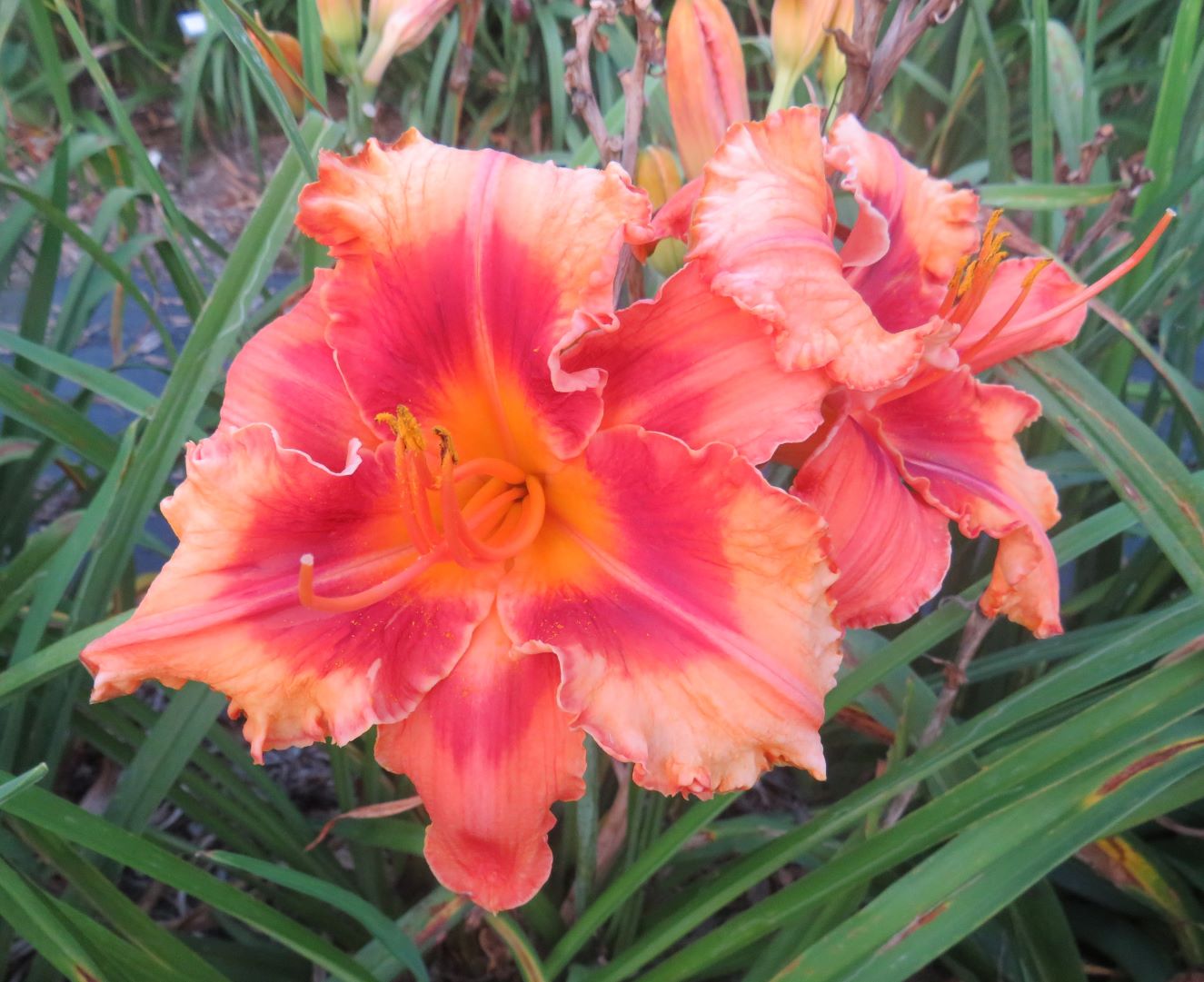 Color: Yellow orange picotee with bold red eye and edge, yellow green throat.