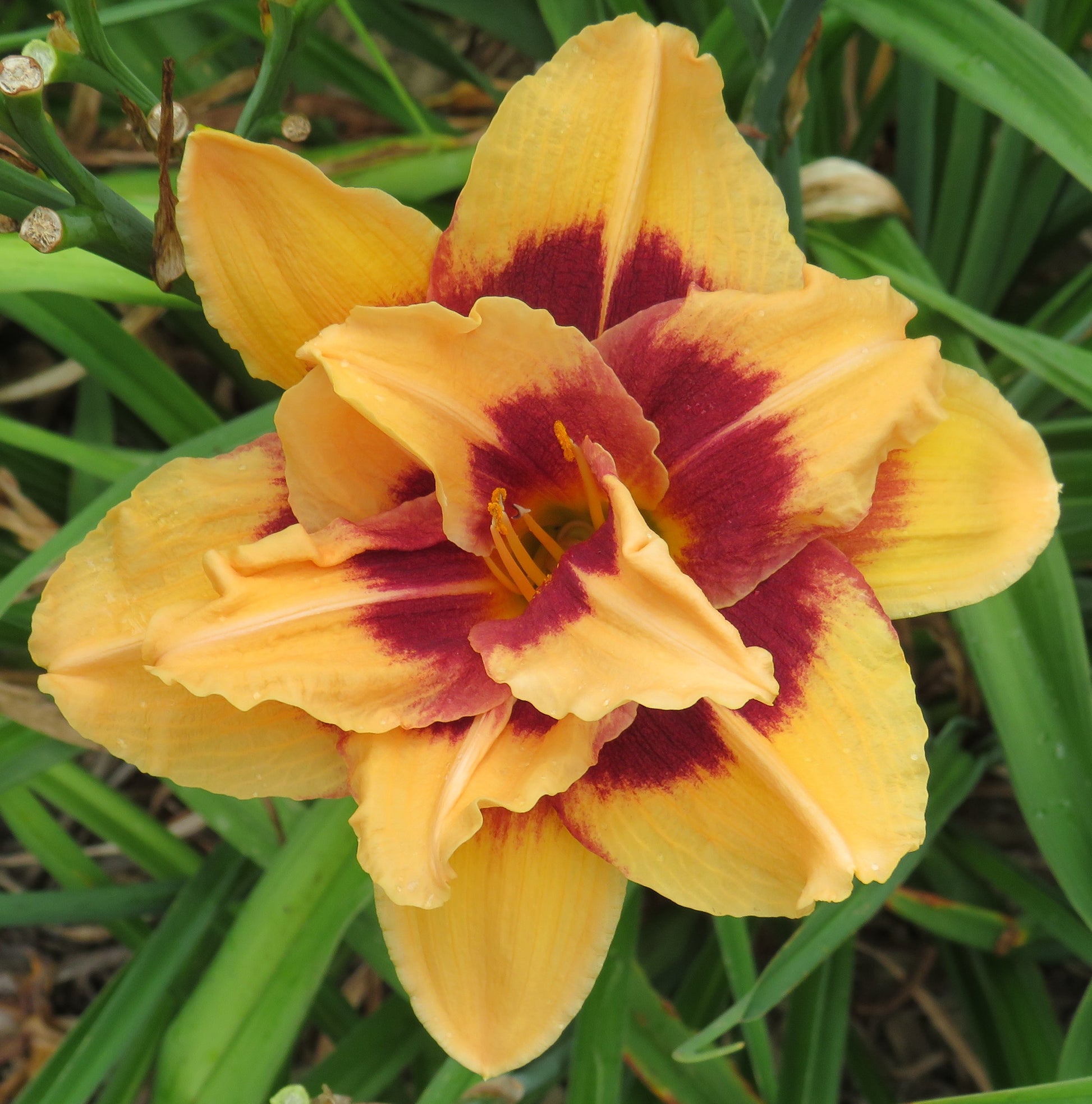 Color: golden yellow with raspberry eyezone and yellow-green throat