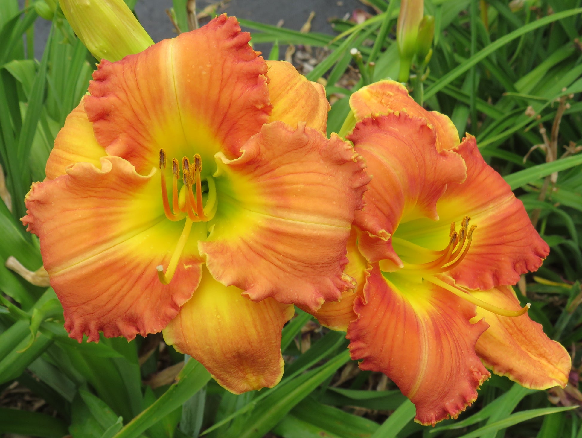 Color: Rose yellow bicolor with rose petals and yellow sepals, small gold edge and green throat.